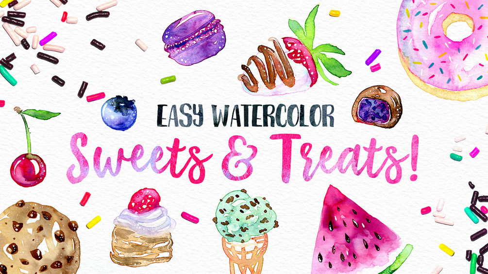 Let’s paint some super cute and easy watercolor sweets and treats. Any skill level can do this class, from beginner to intermediate, and even advanced! Along the way you will:
